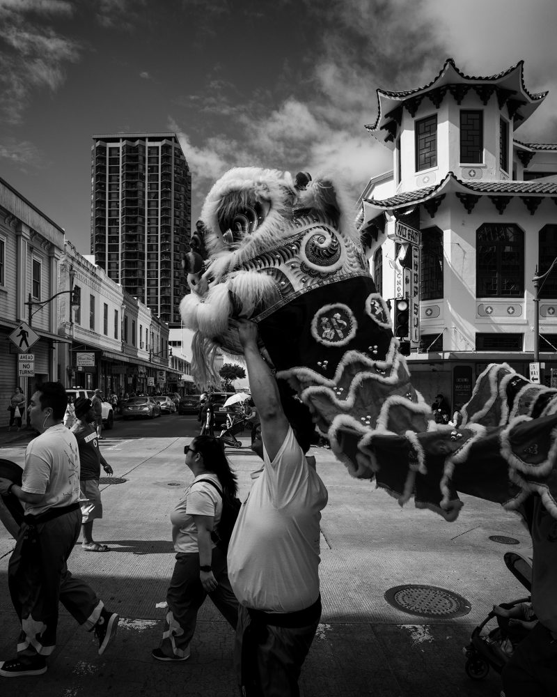 While celebrating the Year of the Dragon in 2024, I was captivated by the breathtaking spectacle of a lion engaging in a fierce battle with a dragon. In a moment of anticipation, I crouched low, steadied my breath, and captured the awe-inspiring scene at A‘ala Park in Honolulu.